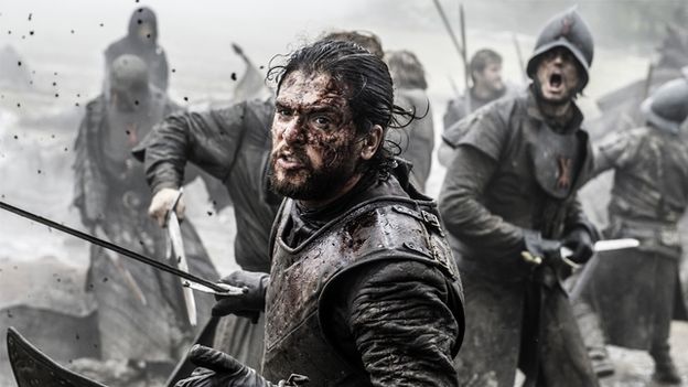 از تیتراژ آغازین و رؤیت نام بازیگران حاضر در این اپیزود، میشد حدس زد که اتفاقات سرنوشتسازی در راهاند؛ شروع حماسی اپیزود با دنریسِ اژدهاسوار و کشتیها و سربازانی که یکییکی طعمهی آتش میشدند، نشان داد که پیشبینیمان غلط از آب درنیامده است. هوشمندانه بود که دیدار تیان و یارا گریجوی برای جلب نظر ملکهی سپیدمو هم در این اپیزود اتفاق افتاد. پس از بازگشت آرامش به میرین، در دقایق باقیمانده از اپیزود، شمال را داریم و جان اسنو و سانسا استارک را که قرار است با منفورترین کاراکتر سریال رودررو شوند؛ رمزی بولتون که مطمئنام همهی دوستداران «بازی تاج و تخت» مدتها بود انتظار به درک واصل شدناش را داشتند! گرچه بهشخصه به ارمغانهای سینماییِ پیتر جکسون از کتابهای پروفسور تالکین علاقهمندم اما بهنظرم نبرد مورد بحث، از تقابل فرجامین لشکریان خیر و شر در "ارباب حلقهها: بازگشت پادشاه" (The Lord of the Rings: The Return of the King) [محصول ۲۰۰۳] و "هابیت: نبرد پنج سپاه" (The Hobbit: The Battle of the Five Armies) [محصول ۲۰۱۴] [۲] هم دیدنیتر از آب درآمده است.
